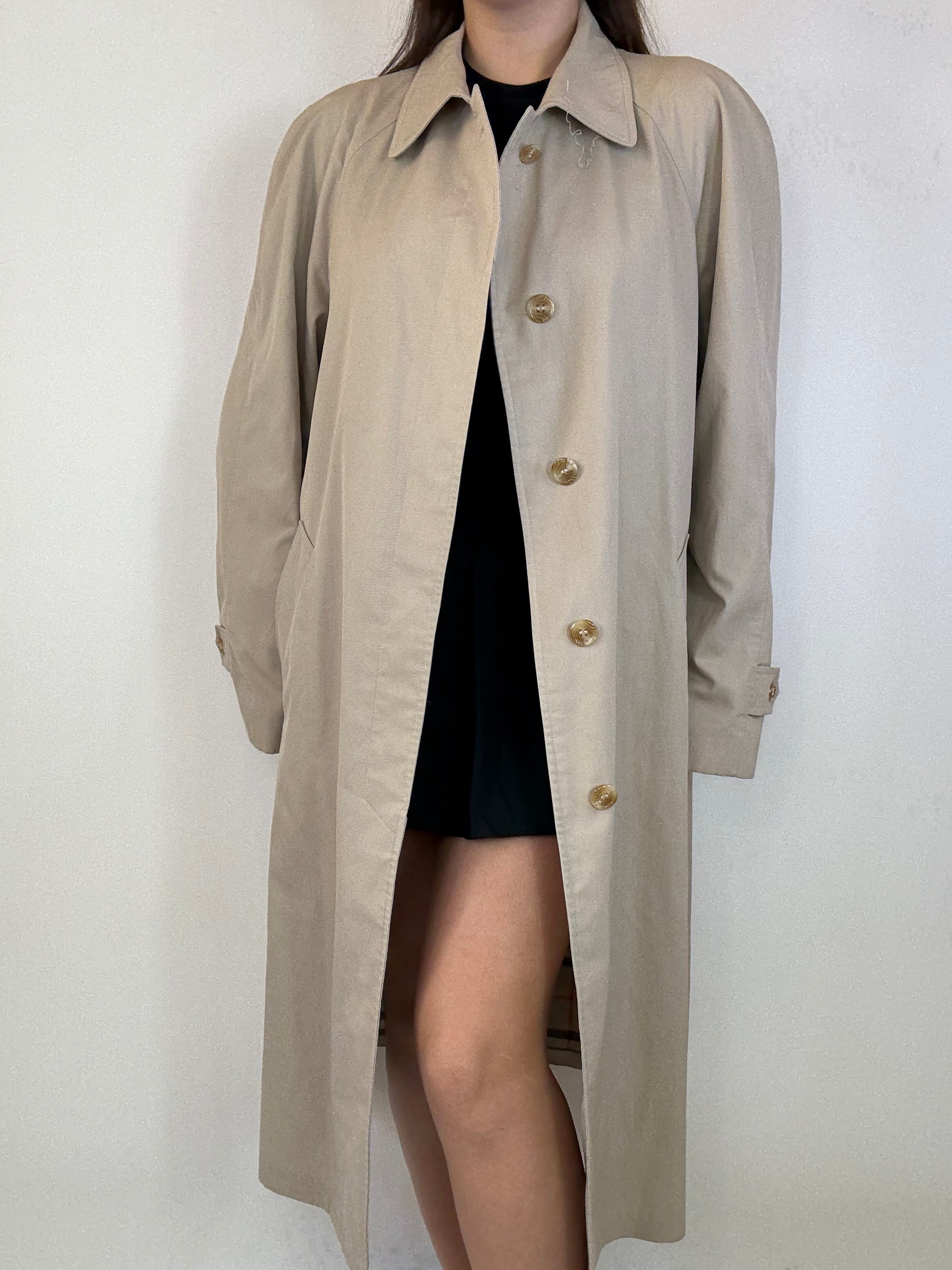 Trench Classico Inglese Made in Italy in 100% cotone impermeabile taglia 48-50  Misure capo: Spalla a spalla 52cm, Lunghezza 112cm Modella: Taglia 42, 1.65mt