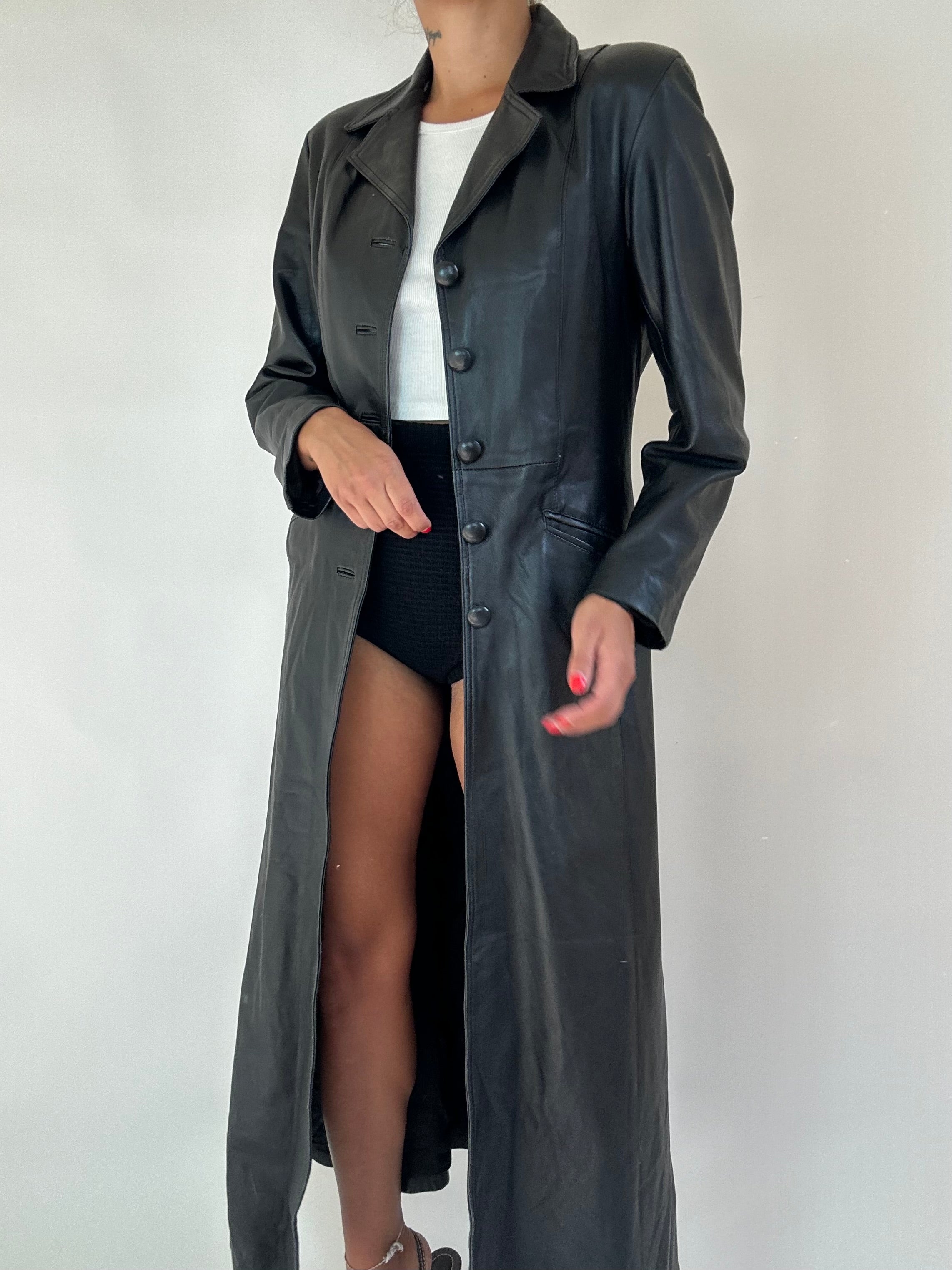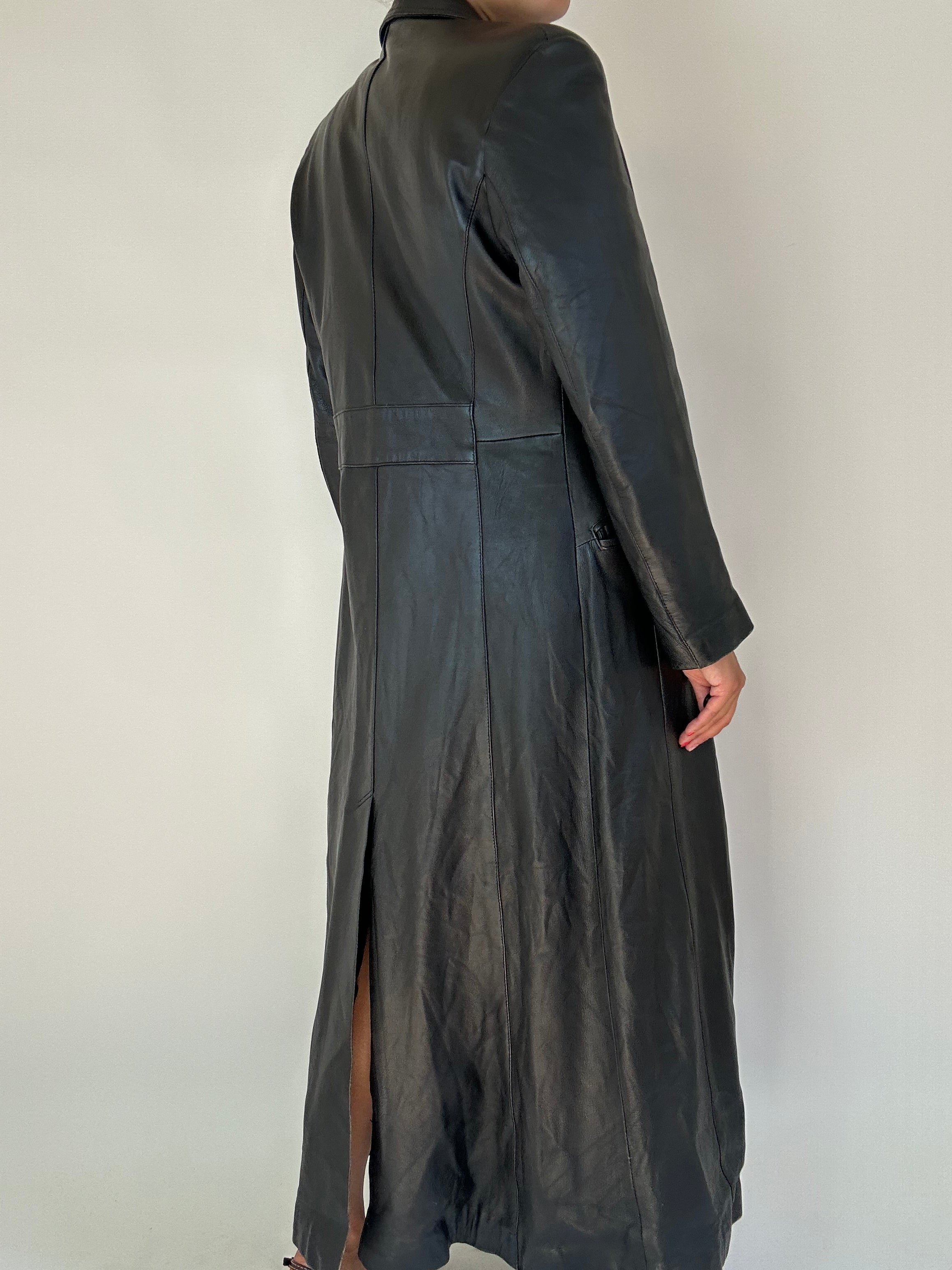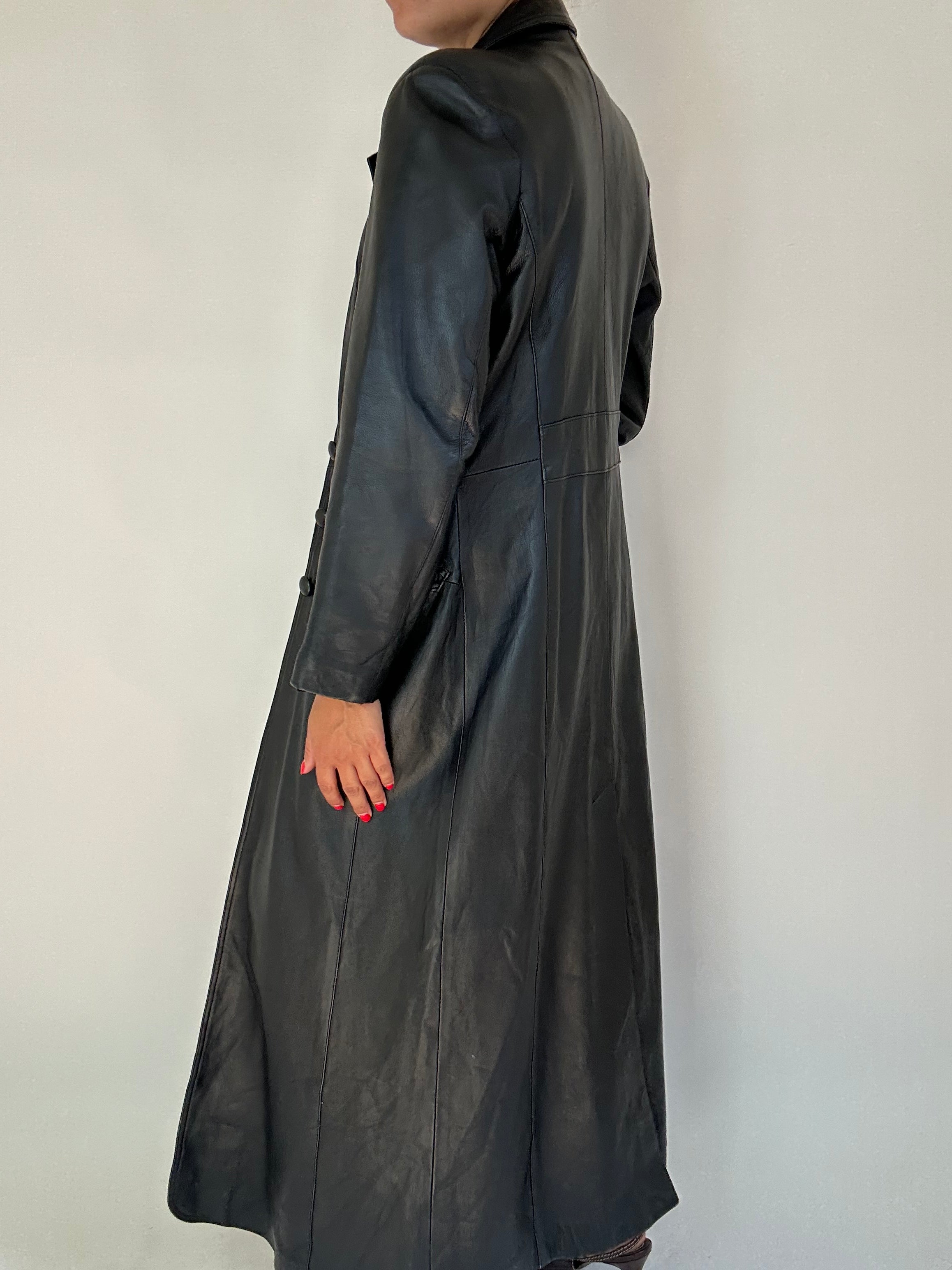 Trench vera pelle nero taglia S  Spalla a Spalla: 42cm Lunghezza totale: 135cm Taglia Modello\a: 42IT x 1,70