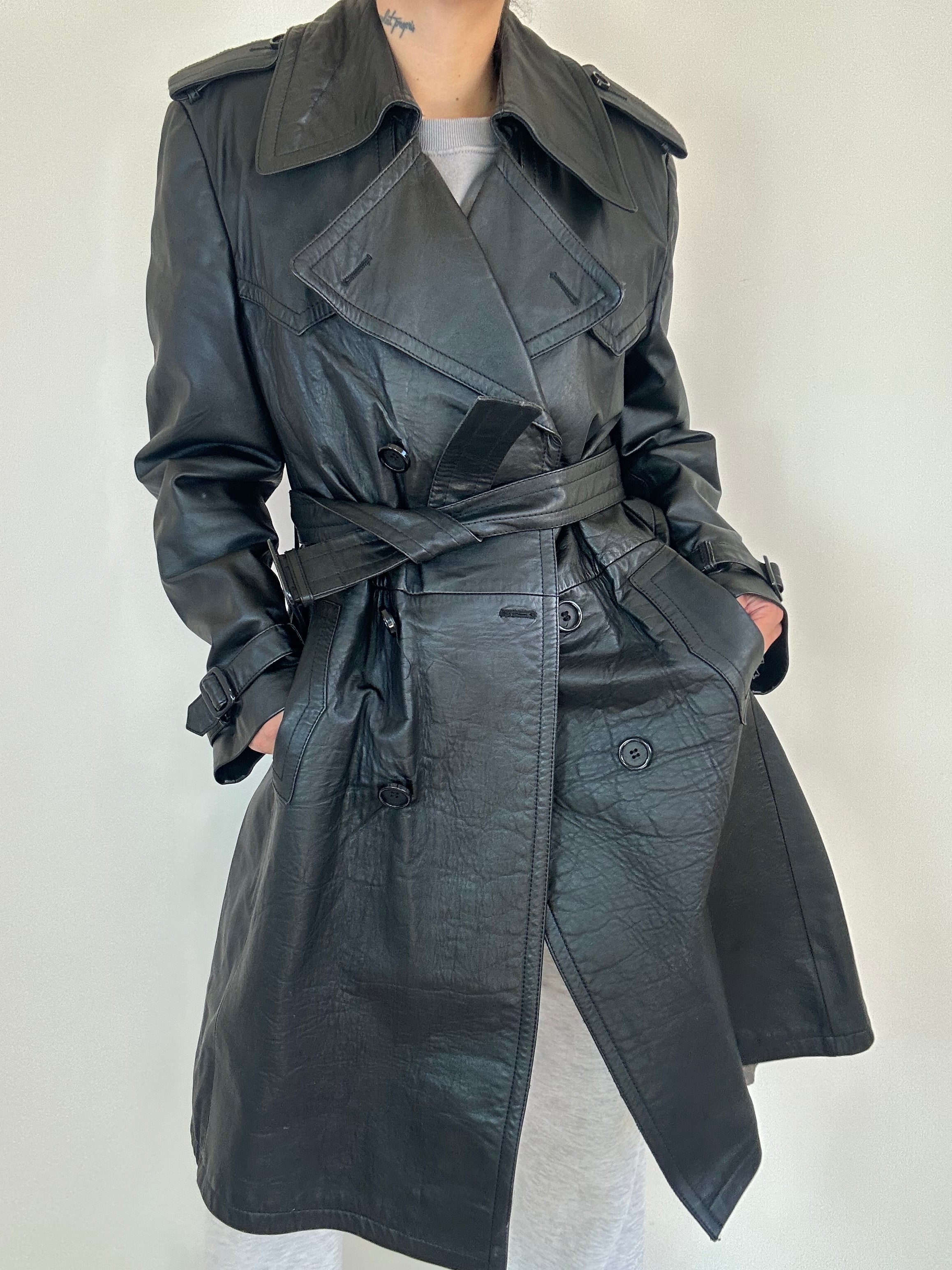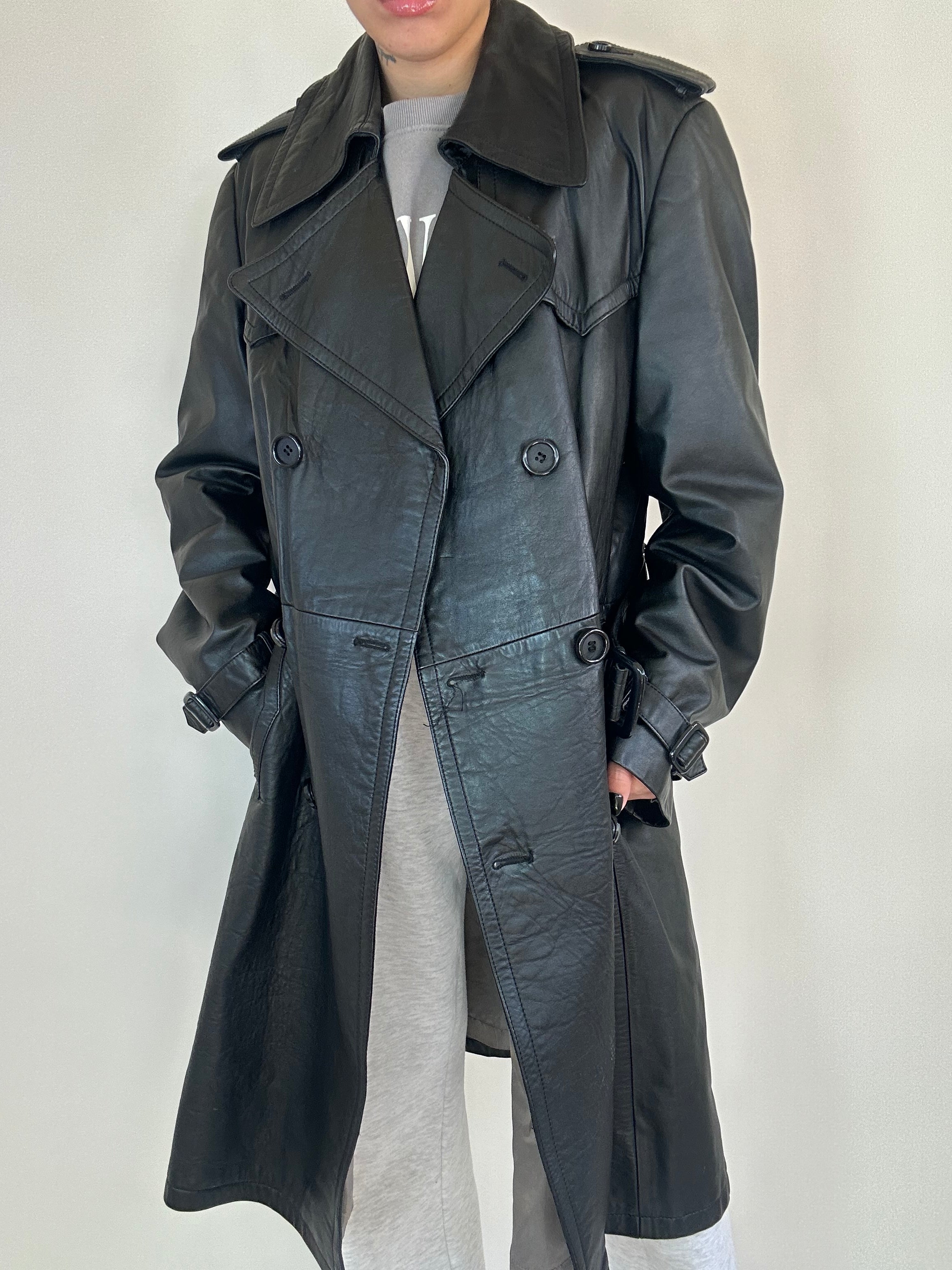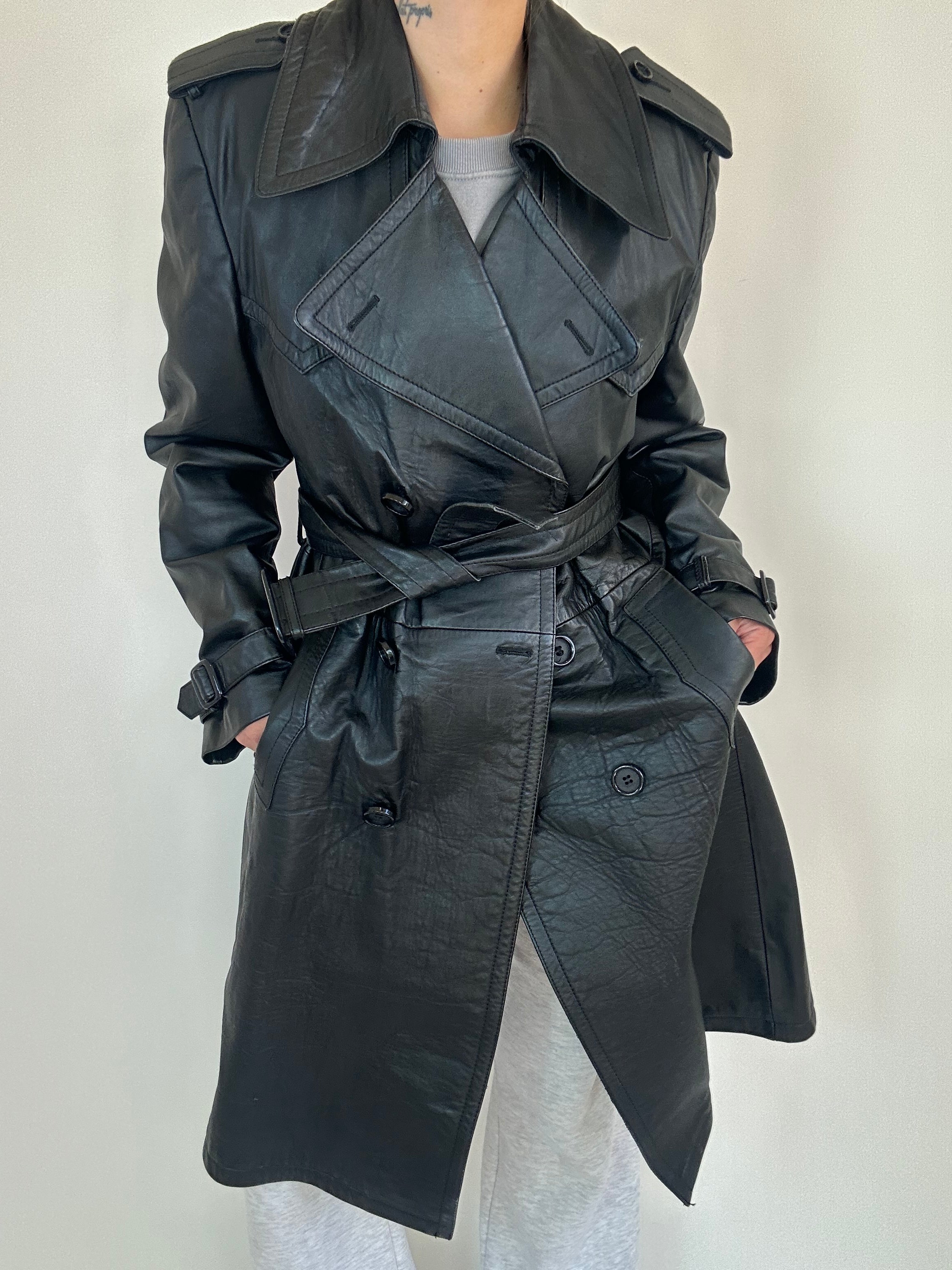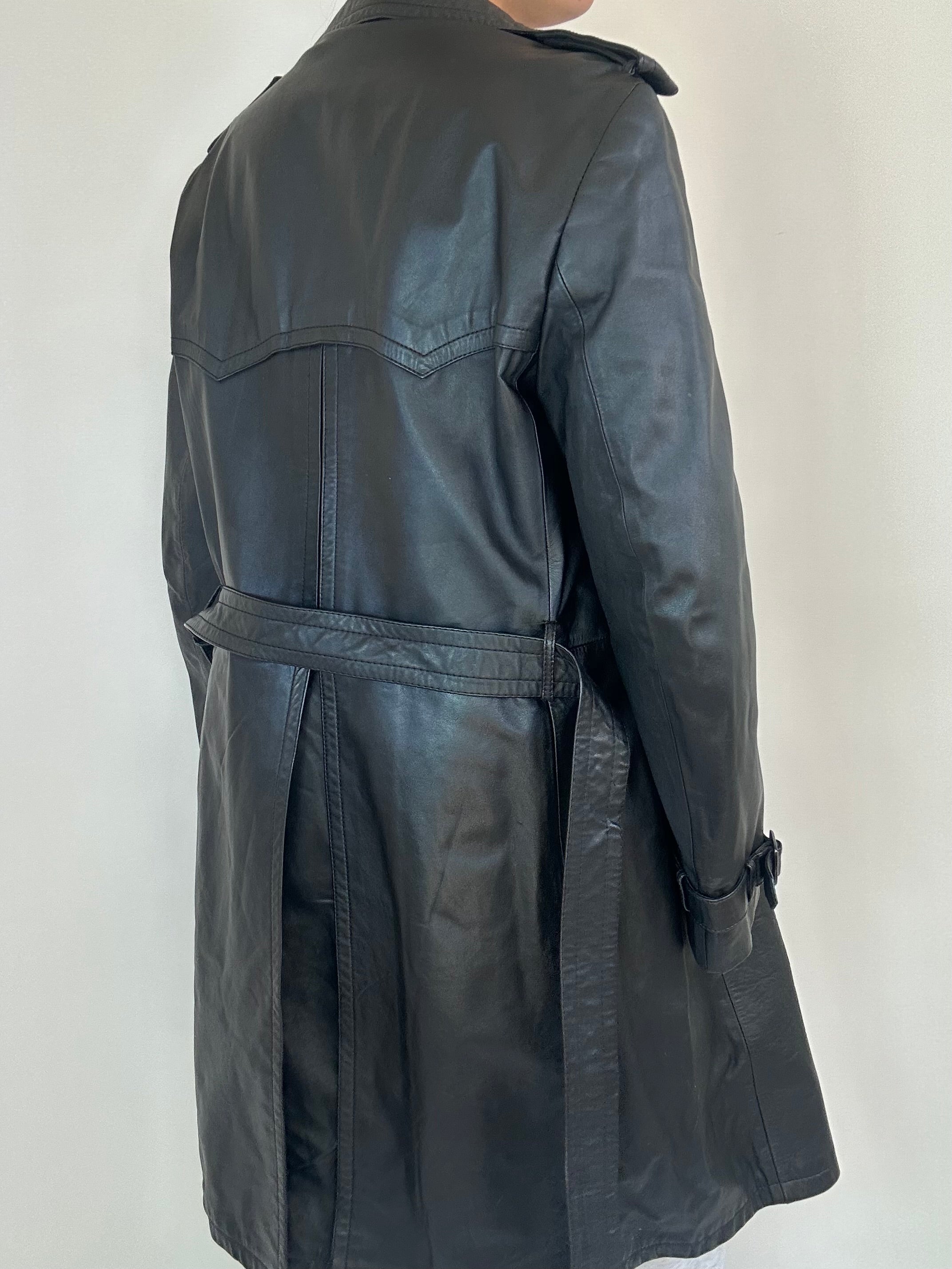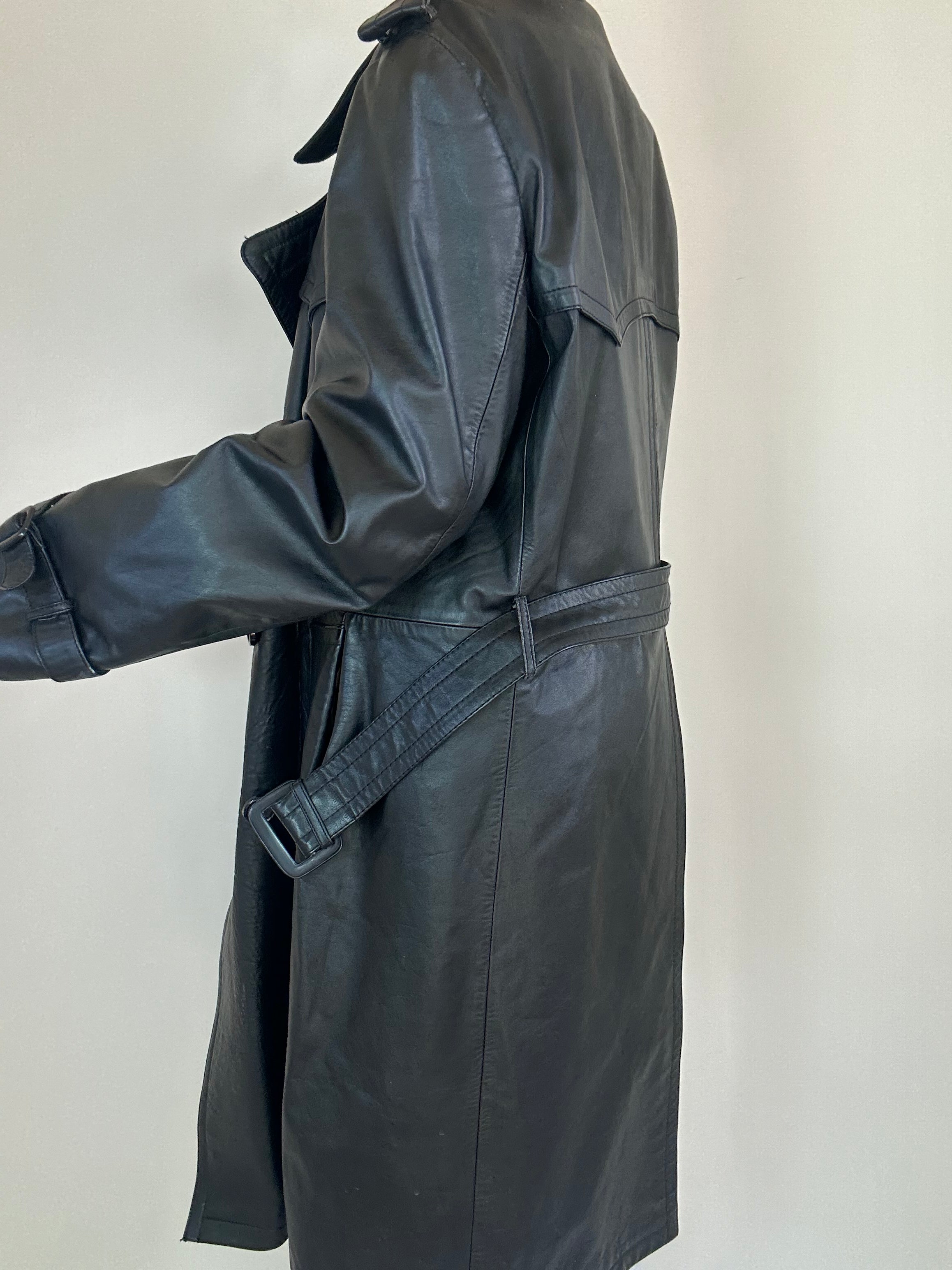 Trench Vera pelé nero doppio petto taglia 50 Spalla a Spalla: 48cm Lunghezza totale: 109cm  Taglia Modello\a:  42IT x 1,70